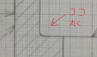 ⇒テンプレートの小さな丸を用いて、角ばっている部分を2㎜程度の円弧に置き換えます。
